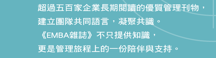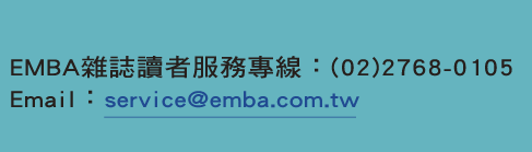 若您不願意再收到EMBA雜誌的各項文章或活動相關電子報,請來信讓我們知道, 後續將會取消相關訊息服務。如有任何建議或疑問,請聯繫EMBA雜誌讀者服務部,電話(02)2768-0105,service@emba.com.tw。謝謝您。